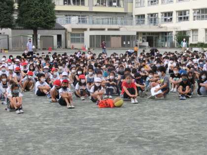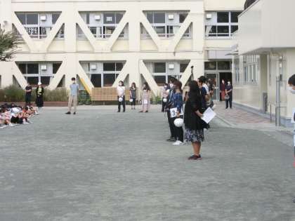 6月の避難訓練を行いました。今日の訓練は「地震が起きたあと、給食室から出火という想定」で行いました。コロナ禍であり、普段、全校一斉に集まる機会はありません。子どもたちは「お、か、し、も」の約束を守り避難することができました。立派でした。火災の時は、ハンカチを口に押えることも大切です。ご家庭におかれましても「地震の時、火災の時にどのような行動をとればいいのか?」をご指導いただければありがたいです。