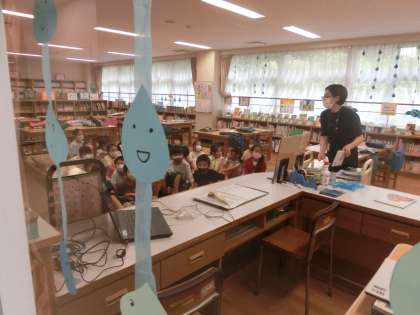 3年生の図書の時間の様子です。司書の先生が読み聞かせをしてくれました。その後、本の返却と貸し出し、そして読書の時間となります。たくさん本を読んで、心を耕してくださいね!