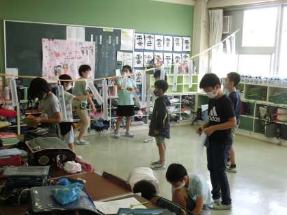 いよいよ明日、なかよしフェスタを行います。3〜6年生は自分たちでお店を運営します。なかよしフェスタのスローガンは「940人の絆の輪 みんなと共に最高のなかよしフェスタ」です。明日のなかよしフェスタ、楽しみたいですね!午後から準備をしました。どのクラスも気合が入っています。明日、期待しています。