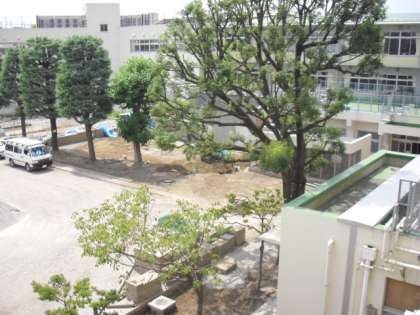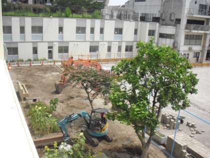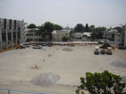 校庭にはたくさんの新しい土砂が大きな山になってあちこちに積まれています。