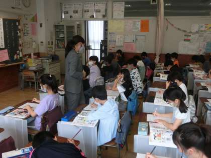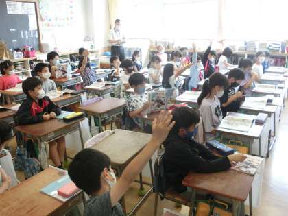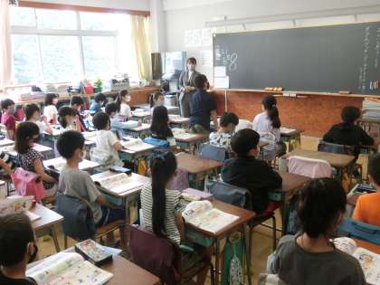 今日は指導力向上サポート室から大久保 一彦先生にお越しいただき、ご指導いただきました。3年生の道徳で教材は「ダブルブッキング」で善悪の判断について考えました。教材に登場する人物の気持ちを一人一人が自分のこととして考えていました。また、自分の考えを堂々と述べることができる子どもたちが多いことに感心しました。