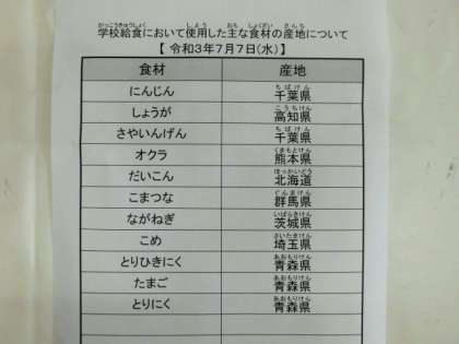 令和3年7月7日(水) 今日の給食