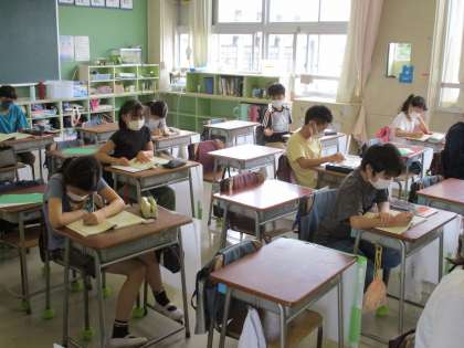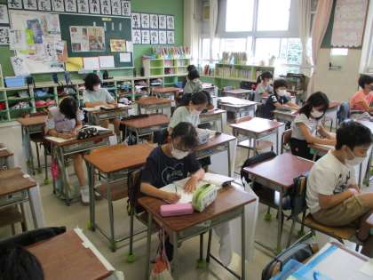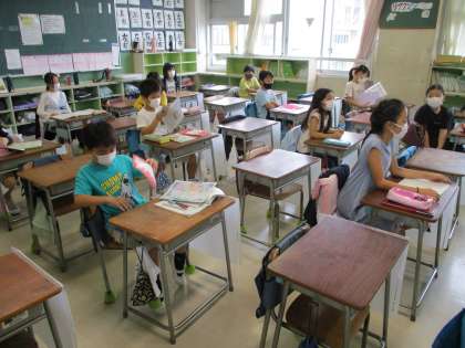 分散登校2日となりました。今日はBグループの登校日です。感染症に対する心配事は尽きませんが、教室や廊下で見られる子どもたちの笑顔に心が癒されます。子どもたちは、登校人数を半分にする分散登校の意味を分かっています。したがって、授業中も静かに学んでいますし、いつもより友達との距離がとれています。明日、明後日は4時間授業です。早く感染拡大がおさまって、対面授業ができる人を心待ちにしています。