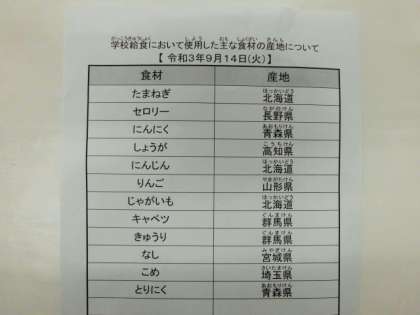 令和3年9月14日(火) 今日の給食