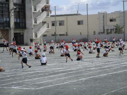 2年生の運動発表会の様子です。立ち位置の確認と通して踊りました。学校でも家でも一生懸命に練習してほしいと思います。明日は練習がありません。さあ、家で練習ファイト、ファイト!