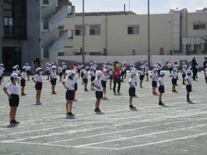 1年生の練習では隊形移動を行いました。踊りも上達してきました。1年生ですので一気に覚えることはできません。1年生の担任は計画的に指導しています。1年生、頑張れ!