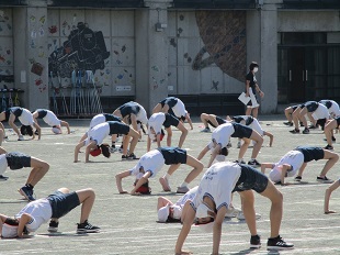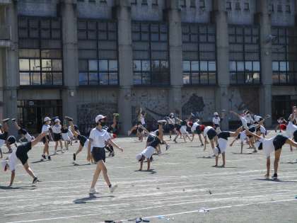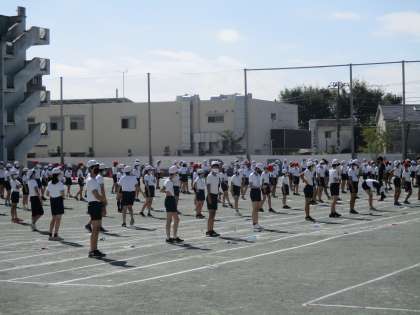 1時間目に行いました。今日は一人一人の立ち位置や隊形移動を中心学習しました。さすが6年生です。先生の指導をよく聞いていました。6年生頑張れ!