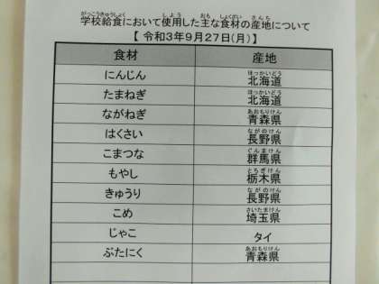 令和3年9月27日(月) 今日の給食