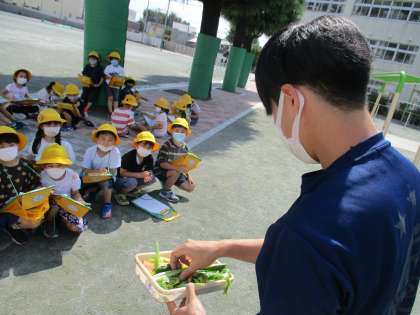 1年生の生活科では「生き物なかよし」という学習をしています。今日は、塚戸小で飼育しているうさぎについて観察しました。担任の先生がうさぎのエサについて説明していました。今後、うさぎをスケッチします。