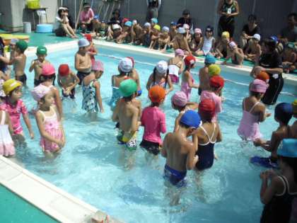 幼稚園は、今日でプールが終わります。年長さんは、年少さんに自分たちができることを見せます。年少さんは、水遊びが楽しくなりました。プールに感謝して、今日のプールは終えました。