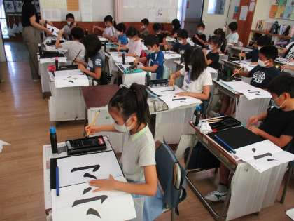 3年生の習字を参観しました。今日は「小」を書き「点やはね」に気を付けて取り組むことができました。筆の持ち方、姿勢がいい子どもたちに感心しました。