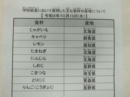 令和3年10月13日(水) 今日の給食