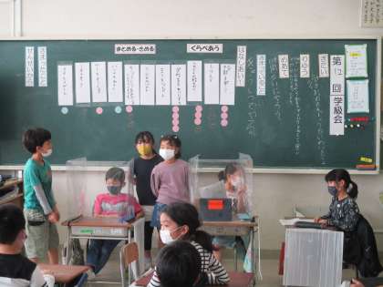 2年生の学級会では「学校のお誕生祝をしよう」という議題で話し合っていました。