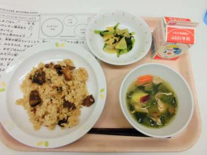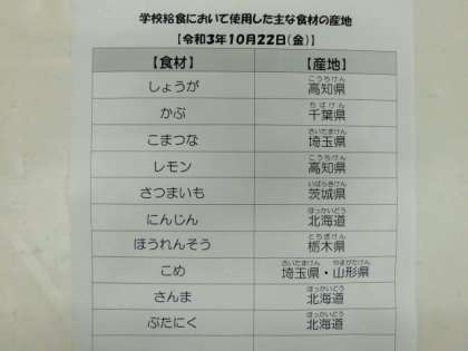 今日は、さんまごはん、牛乳、かぶのレモンじょうゆあえ、さつまいもとほうれん草のみそ汁です。