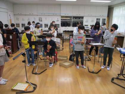 4年生も6年生も音楽では合奏に取り組んでいます。一人一人、演奏するパートは違いますが組み合わさると素晴らしいハーモニーを奏でます。みんなで協力して一つのものをつくりあげることはクラスの力、学年の力が高めます。子どもたちも一生懸命に取り組んでいます。