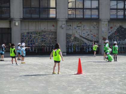 3年生の体育では「キックベースボール」&「小型ハードル走」に取り組んでいます。キックベースボールではルールを理解してチームで協力してゲームを進めることができました。また、小型ハードル走では、リズムよく小型ハードルを越すことができました。気持ちの良い天気で心地よく運動に親しむことができました。