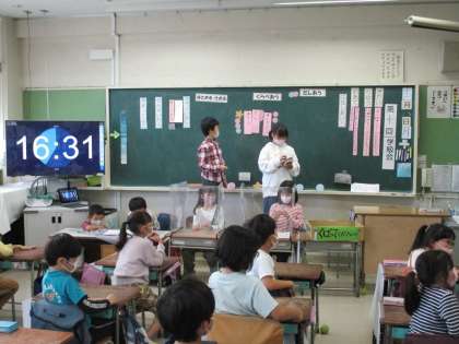 2年生の学級会では「スポーツ大会を開こう」という議題で話し合いを行いました。上級生がリレーやボールゲームをしています。その姿を見て、自分たちもやってみたいと思ったのでしょう!いくつかの案が出ましたが、話合いを通して内容を決めることができました。
