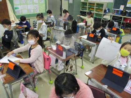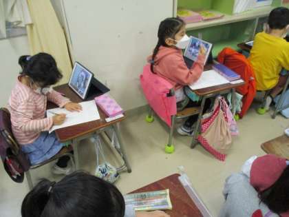 11月9日(火)1年生生活科「作ったリースを絵にしました」