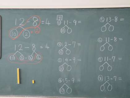 1年生の算数を参観しました。今日は「繰り下がりのあるひき算」に取り組みました。