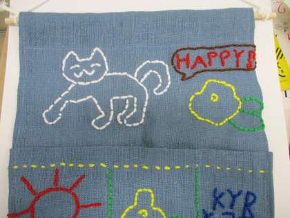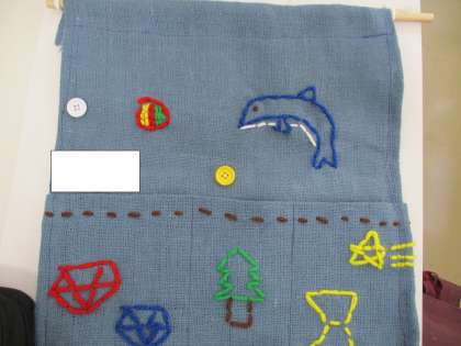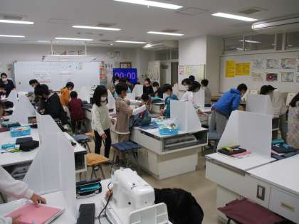 5年生の家庭科では「ウォールポケット作り」に取り組んでいます。自分の好きな動物や自分の名前を刺繍しています。完成した仲間もいました。作品の出来栄えに感心しました。