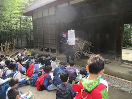 今日は3年生の社会科見学がありました。バスに乗って次大夫堀公園まで行きました。本来であれは区内各地をめぐりたいところですが、新型コロナウイルス感染拡大防止のために1か所のみの見学となりました。次大夫堀公園民家園は江戸時代後期から明治初期にかけての農村風景を再現しています。短い時間ですが子どもたちは真剣に見学をしました。昨年は実施できなかった社会科見学ができ嬉しいです。来週はいよいよ6年生の日光林間学園です。