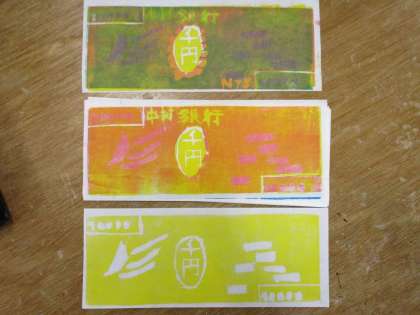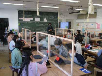 5年生図工「塚戸造幣局」の様子です。個性あふれる作品が完成しました。タブレット端末を使って報告し合いました。