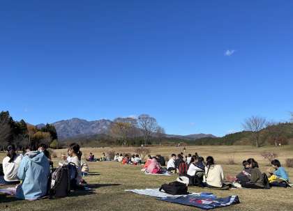 予定通り、11時に日光だいや川公園に到着しました。紅葉はすでに終わっているそうですが、それでも色づいた木々、自然いっぱいの中でお昼ごはんをいただきました。行動班で仲よく食べました。