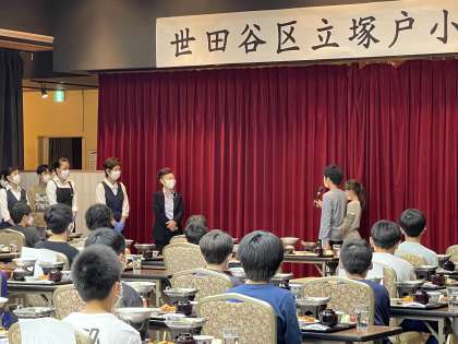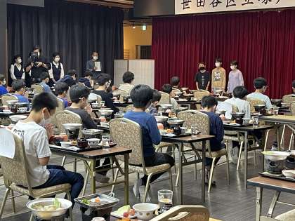 午後6時。夕食の時間になりました。みんな時間を守って行動しています。日光最初の食事に感謝の気持ちをホテルの皆さんに伝えました。コロナ禍の食事はこれまでの宿泊行事とは異なり、みんな前を向いて黙食です。でも、子どもたちは約束を守って、日光の食事を味わいました。おかわりした子もたくさんいました。