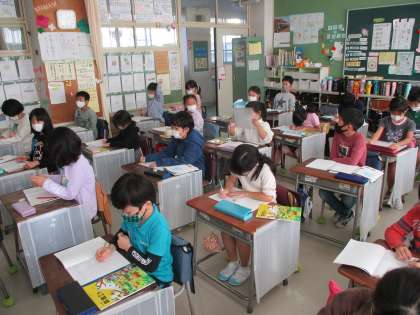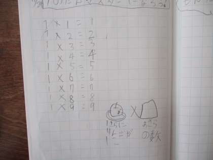 算数のかけ算九九も一通り学習をしました。2の段は2ずつ増えていくことや5の段は5ずつ増えていくことなど、かけ算の構成を学習しました。今日は1の段を確認していました。あとは復習です。2年生、頑張ってくださいね!