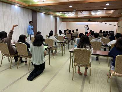 2日目の部屋長会議が行われました。「静かにすべき時に声を掛け合う場面が増えてきました」「他の人のことを考えて昨日よりさらにルールを守れるようになりました」など、1日目からの成長を伝え合いました。課題も提案されました。「課題は明日への宿題だね。明日の江戸村は行動班でどう過ごすか、みんなの力を発揮する大切な3時間です。」と先生からお話がありました。この後は就寝準備です。21時30分就寝です。