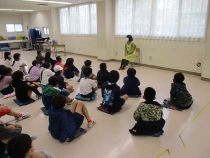 山の木文庫さんによる読み聞かせです。今日は4年生。子どもたちの聞く態度が素晴らしいです。山の木文庫さん、いつもありがとうございます。