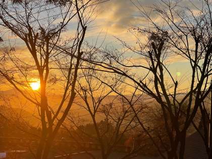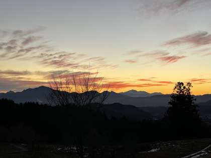 火起こし体験が終わる頃、きれいな夕日を見ることができました。この後は、お風呂タイムとお土産タイムです。