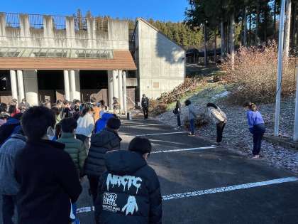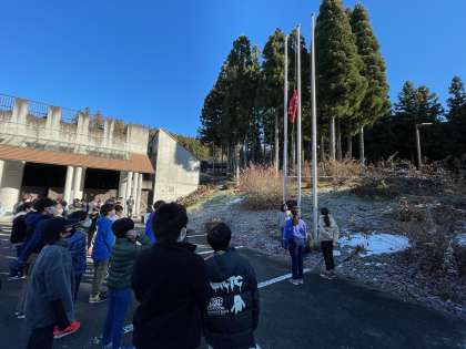 閉室式の時間になってしまいました。なかのビレジともお別れです。宿舎の方にみんなで感謝の気持ちを伝えました。校章旗を降納し、村巡りに出発します。