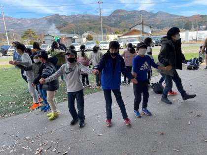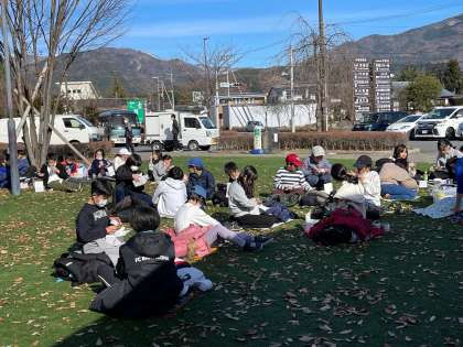 田園プラザに着きました。11時30分から1時間程度、お昼の時間です。行動班で食べました。食事の後の時間もみんなで楽しく遊びました。12時40分、田園プラザを出発して東京に向かっています。