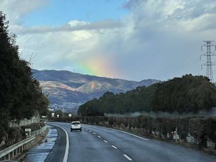 まもなく赤城高原SAに到着ですが、途中で虹を見ることができました。車中からですが子どもたちも喜んでいました。