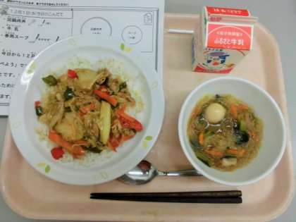 今日は、回鍋肉丼、牛乳、春雨です。