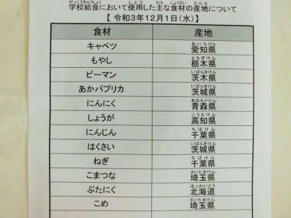 令和3年12月1日(水) 今日の給食