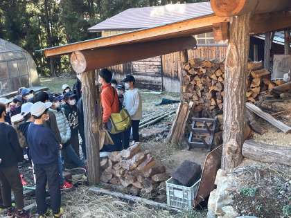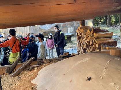 杉の木のこと、森が私たち人間にとってとても大切な場所であること、宿舎の近くにある炭焼き窯のことなど、詳しく教えていただきました。