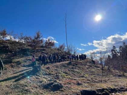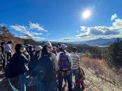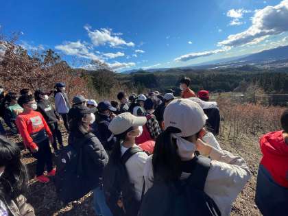 里山体験でたくさんの自然のことを学びました。ガイドの方がお天気がいいので見晴らしのいい場所を案内してくださいました。川場村が一望でき、明日行く田園プラザも遠くに見えました。なんと富士山も見えました。