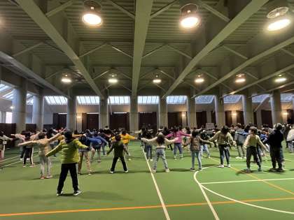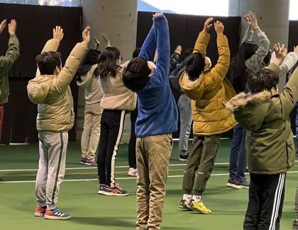 朝会を屋根付き広場に変更して行いました。元気にラジオ体操をして体を温めました。朝のあいさつがとても上手な5年生です。