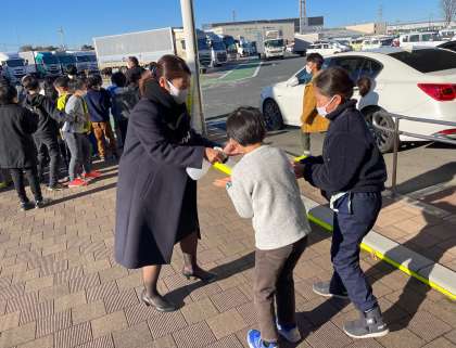 三芳パーキングで休憩後、14時20分にバスは出発しました。バスに乗るときは消毒を忘れません。こん後は、環八の混み具合など学校と連絡しながら帰路につきます。子どもたちはDVDを楽しんで見ています。