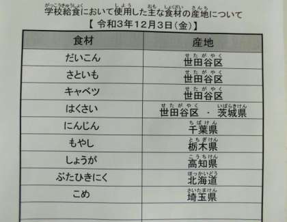 今日は「せたがやそだち給食」です!詳しくはここをクリックして開いてみてください!