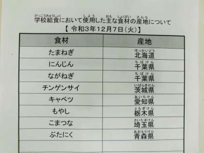 今日は、カレーうどん、牛乳、野菜の甘酢かけ、ベジタブルドーナツです。
