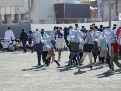 今日、月1回の避難訓練を行いました。中休みに地震があったとの想定のもと行いました。中休みは教室や校庭、体育館で遊んでいることもあります。トイレに行っている場合や廊下、階段を歩いていることも考えられます。そのような時、「どのような避難行動をとることができるか」が重要になります。子どもたちはそれぞれの場所で適切な避難態勢、行動をとることができました。