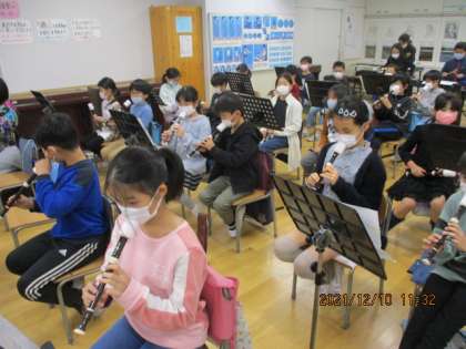 12月10日(金)4年生音楽「合奏 SMILE〜晴れ渡る空のように〜」