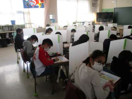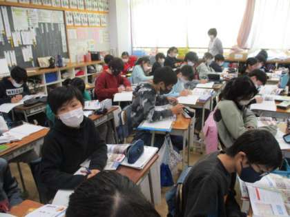 教室を巡回しているとテストを行っているクラスが多いです。子どもたちは最後のまとめを頑張っています。写真はテストの様子です。