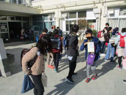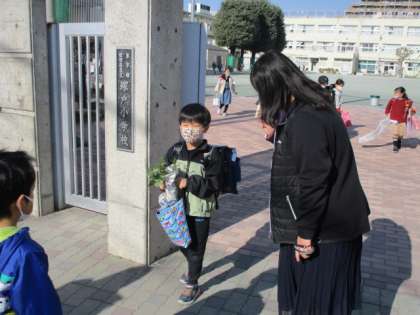 校長先生と正門で子どもたちを見送りました。子どもたちから「校長先生、よいお年を!」という言葉が響き渡りました。「よいお年を!」には、今年もありがとうございました。お世話になりました。また、来年もよろしくお願いします。元気でね!いい年を迎えてくださいね!など、様々な意味が込められている言葉です。また、この時期にしか使わない心温まる、すてきな言葉です。