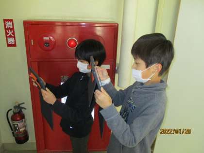 4年生総合的な学習の時間では「学校のユニバーサルデザイン」を調べています。手すりやエレベーターの点字、水道の蛇口など、調べてみるとたくさんあります。子どもたちは、一生懸命に探したり、学習用タブレット端末で写真を撮ったりして学習を深めました。今後は、調べたことをまとめたり、問題点を考えたりしていきます。