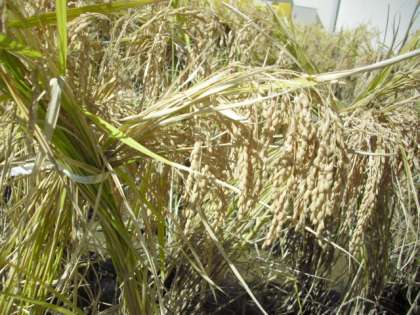 稲刈りをした稲を屋上で干しています。17日に「脱穀」の作業をします。