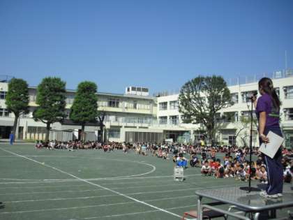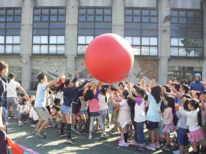 昨日、雨でできなかた全校練習を行いました。今日は、全校種目の「大玉送り」と応援団の練習でした。987名の全校児童が行うと、迫力があります。最後の仕上げでした。